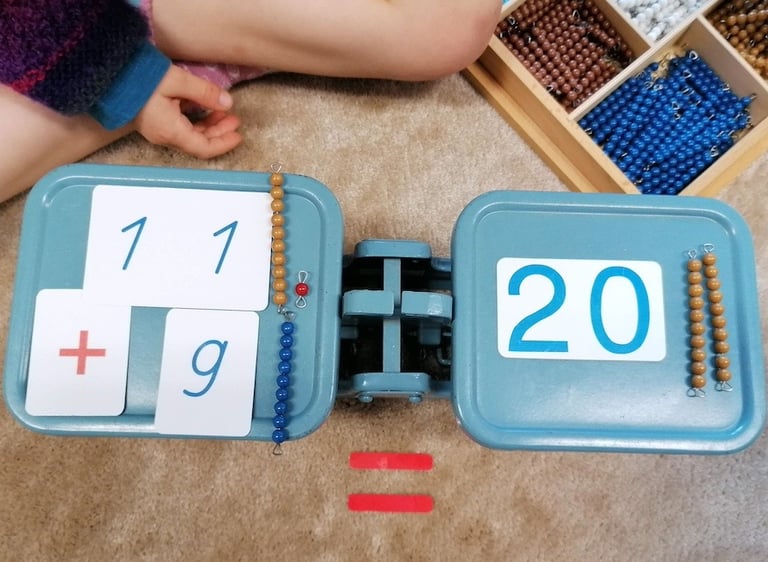 Wenn - wie auf einer Waage - auf beiden Seiten die gleiche Menge liegt, stimmt die Gleichung und wir schreiben dafür das Gleichheitszeichen: 11 + 9 = 20. Der Weg des Verstehens führt von konkretem Material zu abstrakten Zahlen auf dem Papier.