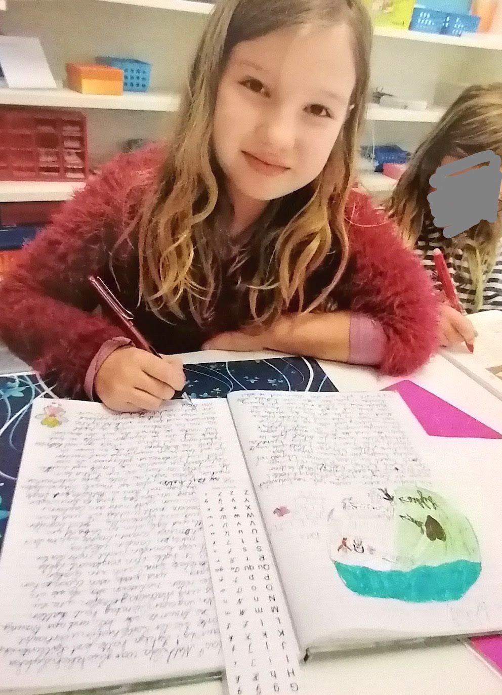 Wir haben keine Klassenräume. Den Kindern steht fast ganztägig die ganze Schule zum Lernen zur Verfügung. Sie sind da, wo sie sein wollen. Da, wo ihre Arbeit ist oder wo sie Pause machen. Gelernt wird überall.
